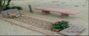 'Heroes Baseball' poem inscribed at foot of grave. A bench next to the